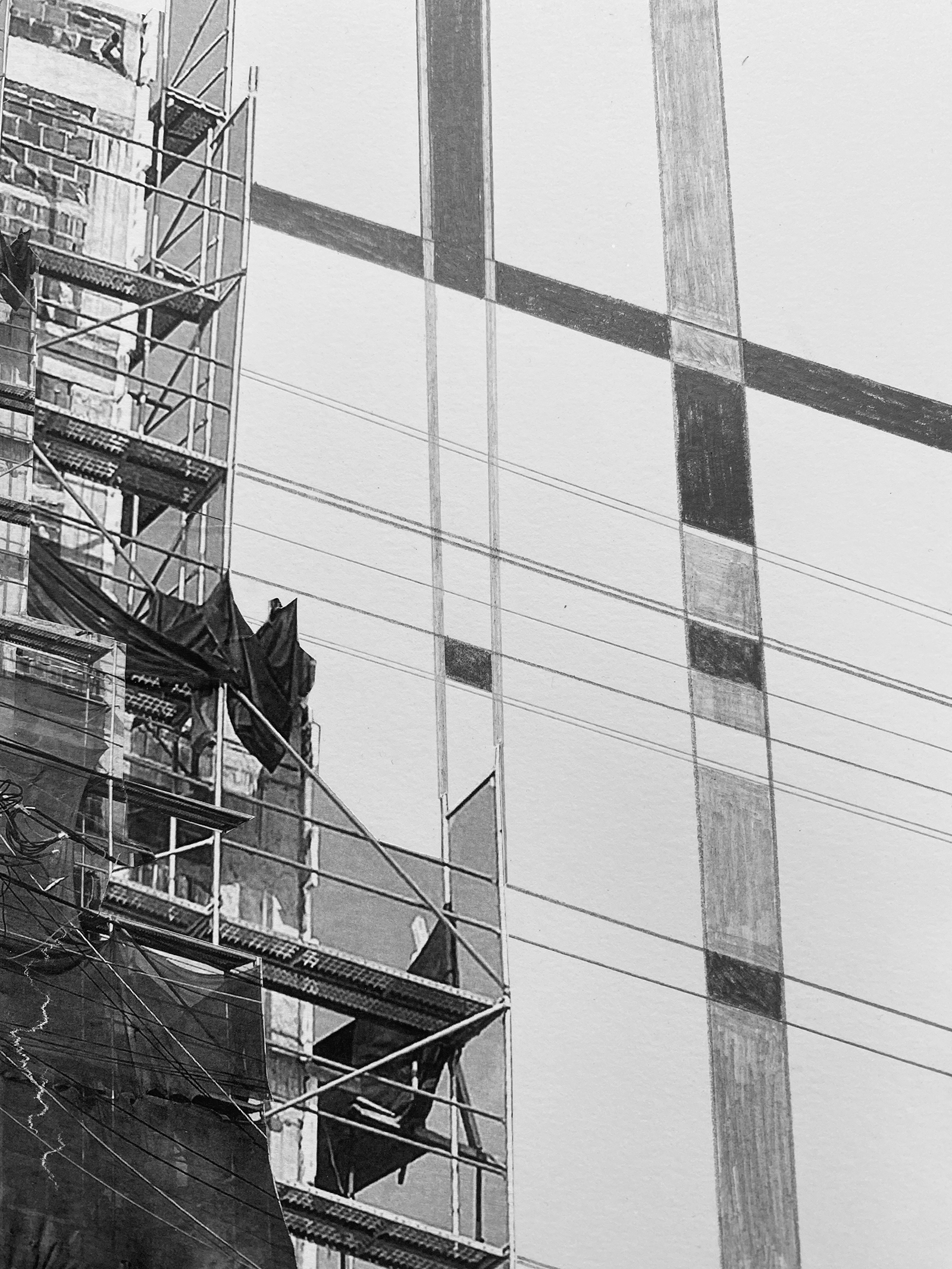 c_r_07_Tirana_ALB, Detail, 2025, Fotokopie, Kleister, Bleistift auf Papier. 59,5 x 42 cm